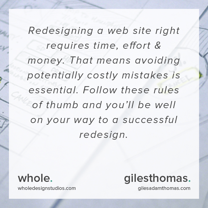 Redesigning your web site right requires time and effort – and money. That means avoiding potentially costly mistakes is essential. Follow these rules of thumb and you’ll be well on your way to a successful redesign.